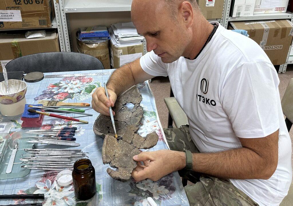 — Сейчас у нас готовится к сдаче в музей коллекция керамики из курганного некрополя эпохи ранней бронзы. Также есть интересная находка – золотая серьга с подвеской очень тонкой ювелирной работы. Она находится на реставрации. Что касается самого процесса раскопок и восстановления находок, то сначала при обнаружении предмета его аккуратно расчищают и фотографируют, наносят чертёж на план, берут отметку высоты, глубины и всё записывают. При необходимости проводится полевая реставрация артефакта, его консервация для защиты от разрушения. Только потом предмет извлекают из грунта и помещают в специальный бокс, который передают на камеральную (лабораторную) обработку. Если мы говорим о керамике, её моют, пытаются собрать по кусочкам и склеить. При необходимости догипсовывают, то есть восстанавливают недостающие части. Благодаря этому можно увидеть, как выглядел целый предмет. Мы максимально подготавливаем находки перед передачей в музеи, но некоторые работы проводят и его реставраторы, — отметил археолог, научный сотрудник Института археологии РАН Семён Ермолин.