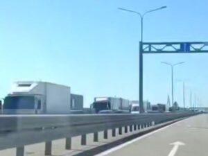 Длинная очередь из сотен автомобилей образовалась на Крымском мосту вечером 4 октября. Водители пытаются попасть в Краснодарский край. К 18:00