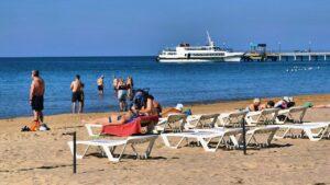 Блогер Андрей Маковозов 22 сентября показал, что происходит на популярном пляже «Аквамарин» в Витязево в бархатный сезон. На территории идет
