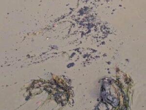 На побережье Черного моря в Краснодарском крае 11 октября обнаружили выброса мазута. Мелкие капли нефтепродуктов прилипают к подошве обуви и