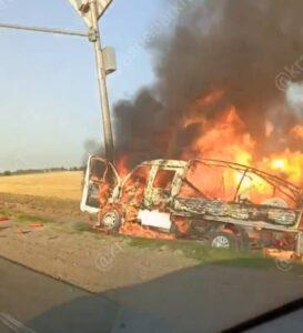 Как стало известно 24 июня, утром недалеко от станицы Полтавская Краснодарского края после ДТП загорелось авто. Дорожно-транспортное происшествие с возгоранием