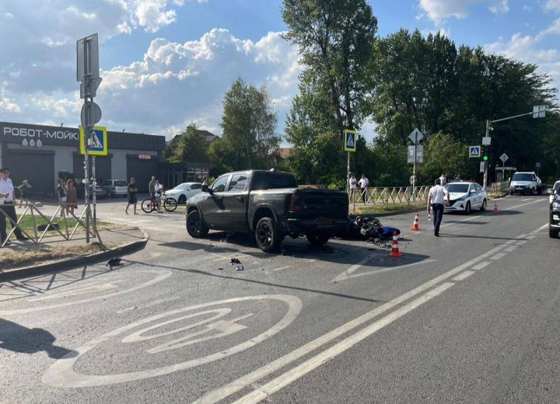 Авария произошла около 15:00. По данным полиции, 55-летний водитель за рулем автомобиля Ram двигался по улице Российской со стороны улицы Петра Метальникова. При повороте налево он столкнулся с мотоциклистом, который, по предварительной информации, двигался на желтый сигнал светофора.