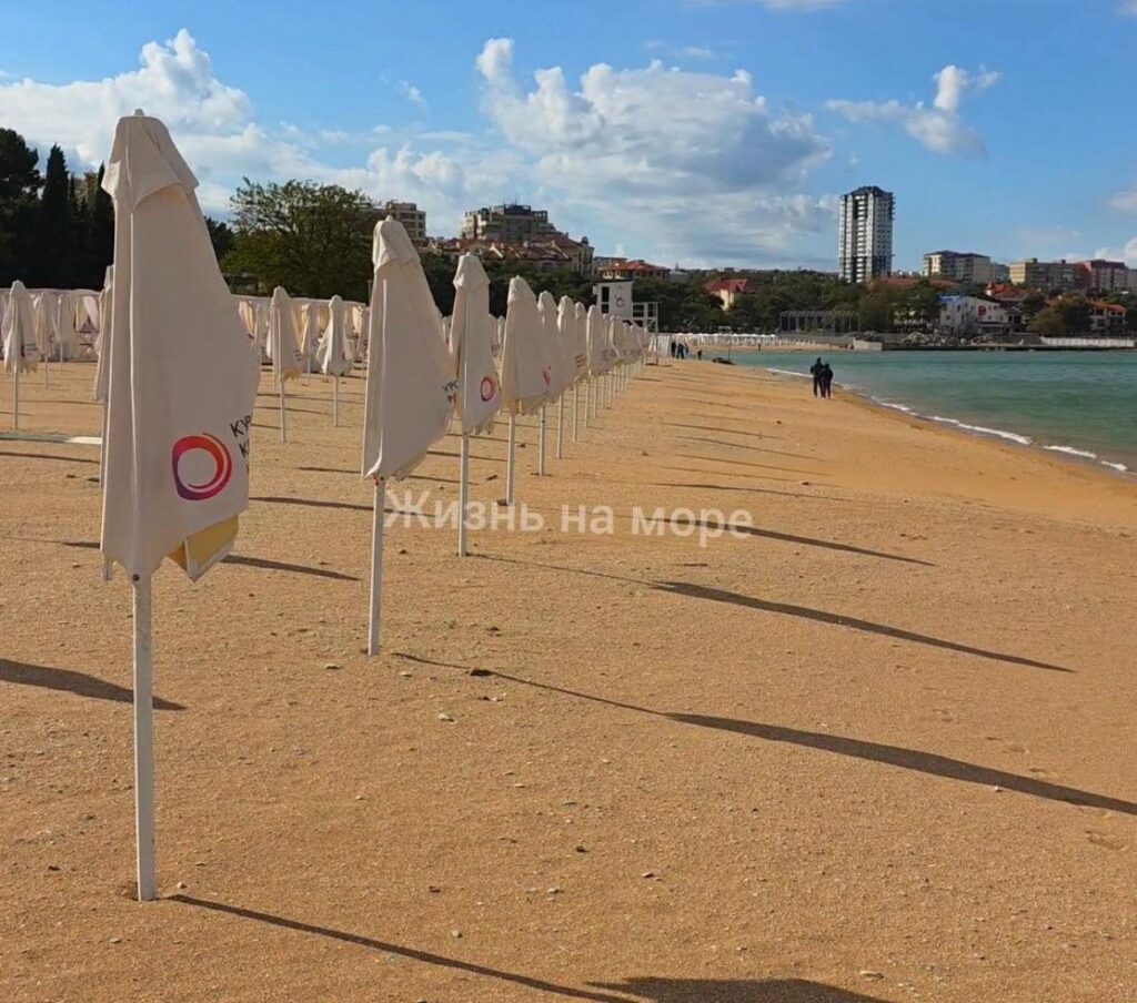 «Абсолютно пустынные пляжи. Видимо, сезон подошел к своему логическому завершению. Сегодня прохладно, на улице +13 градусов. Шезлонги сложили пачками, люди в куртках и шапках. Ветрено, но красиво», — прокомментировал автор тг-канала «Жизнь на море».