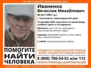 В Краснодарском крае к 29 декабря больше недели разыскивают без вести пропавшего пожилого мужчину. Он уехал на велосипеде с маленькой