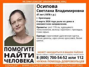 Третью неделю в Краснодаре разыскивают 47-летнюю женщину, которая вышла из дома и бесследно пропала. В поисках принимают участие добровольцы, полиция