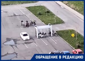 Парковка на улице Снесарева в Краснодаре стала местом встречи любителей питбайков. Водители, которые предположительно являются подростками, оккупировали остановку общественного транспорта,