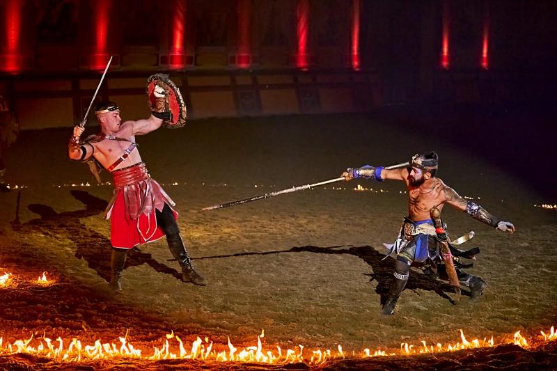 В Новогодние праздники яркие впечатления, веселые игры и многочисленные сюрпризы вам подарят герои красочного шоу: прекрасные амазонки, нимфы, гладиаторы, повелители огня, царица Египта Клеопатра, Великий Цезарь, великолепные лошади мировых шоу от Андалузских до Арабских скакунов и, конечно, Дед Мороз и Снегурочка.