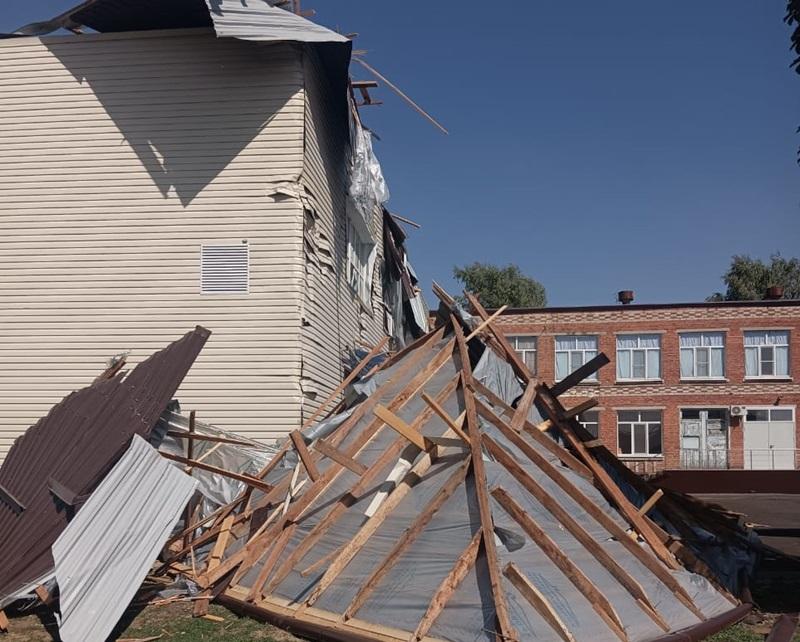 В Выселковском районе Краснодарского края 15 сентября порывы ветра сорвали часть кровли со здания сельской школы. Крышу будет восстанавливать подрядчик.