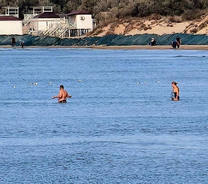 Несмотря на конец ноября, пляжи Анапы не пустуют. Воздух в городе сегодня прогрелся до +20 градусов. Температура воды держится на уровне +16 градусов. Погода позволяет гулять вдоль моря и рыбачить. Но кому-то этого мало.