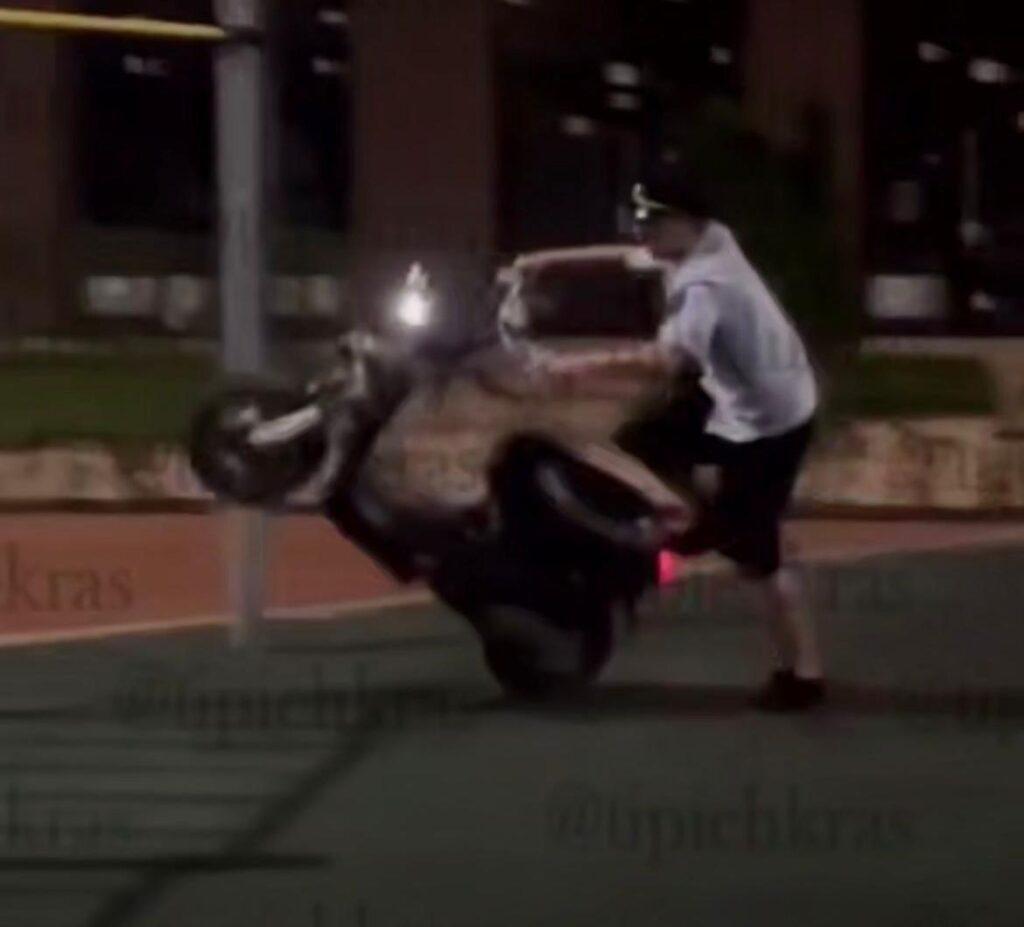В сети появилось видео из поселка Южного Краснодарского края, на котором молодой человек на мопеде в форме, похожей на полицейскую, исполняет различные трюки. По словам местных жителей, подростки регулярно нарушают тишину и покой жильцов многоэтажки.