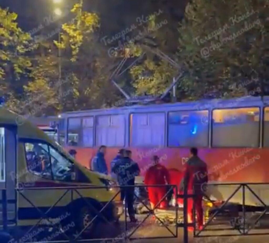 По словам очевидцев, от удара трамвай сошел с рельсов. В сеть попал момент оказания медпомощи пассажирке.